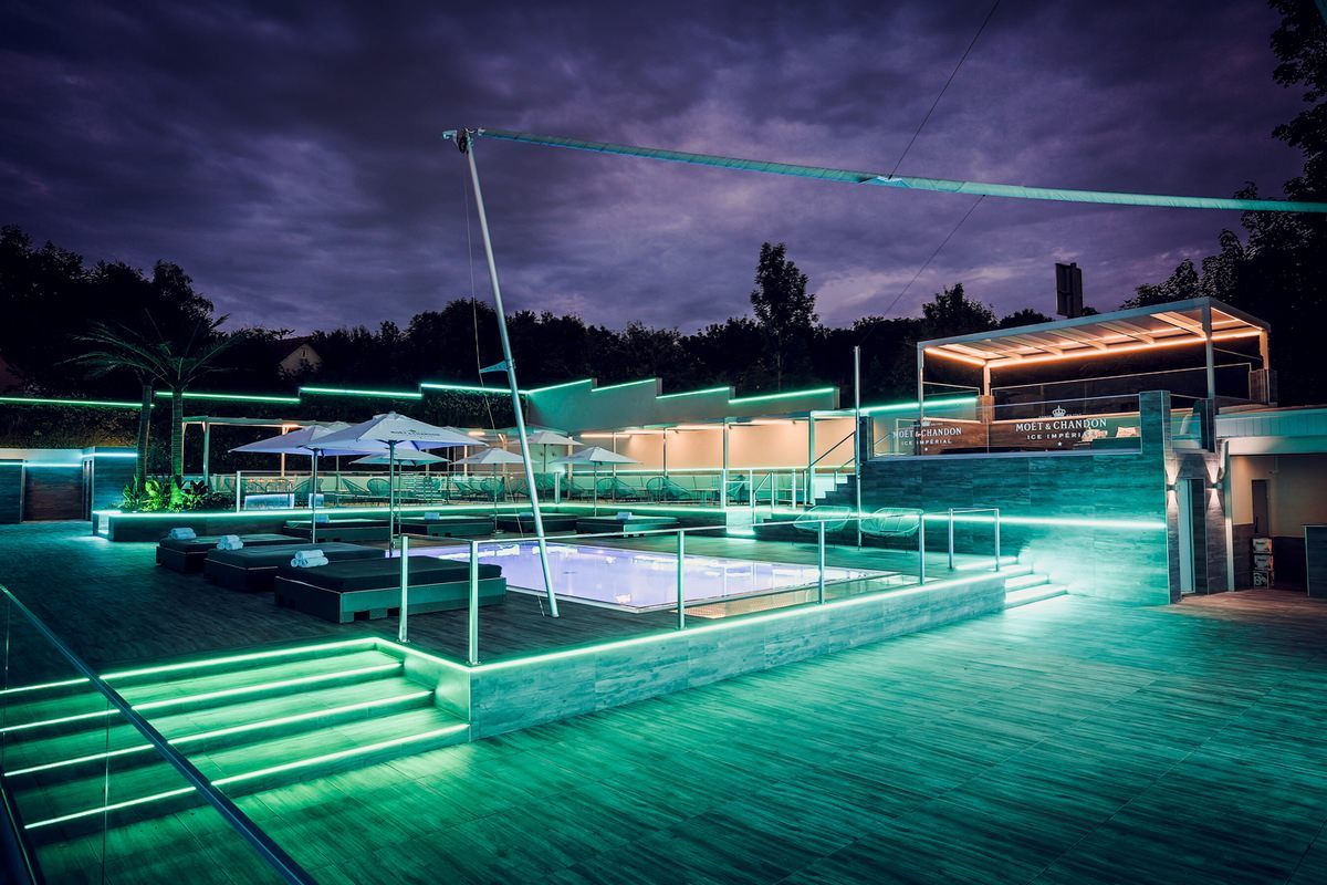 Besonderes Partyflair bietet die Moet Lounge. Am höchsten Punkt der Location schwebt man über den Dingen. Zusammen mit Freunden kann man im exklusiven Whirlpool und mit einem Glas Moet Ice entspannen oder auch wild feiern.